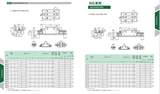 RG系列以滚柱型滚动体取代了钢珠,为实现超高刚性与超重负荷能力而设计;透过滚动体与滑轨与滑块的线接触方式,让滚动体在承受高负荷时仅仅形成微量的弹性变形,更藉由45度的接触角度的设计,让整体直线导轨达到四方向等高刚性、等高负荷能力的特性表现。透过超高刚性的实现,可大幅提升加工精度,达到高精度的要求;由于超重负荷的特性,进而延长直线导轨的使用寿命。