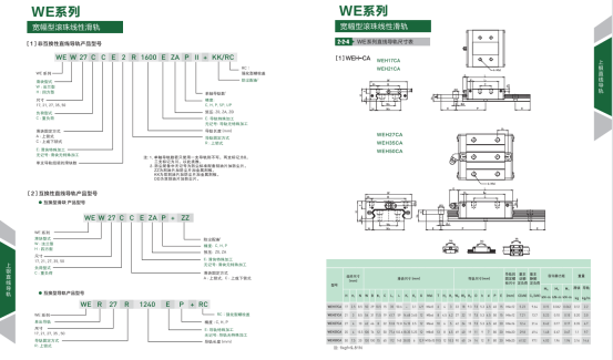 WE系列采用四列式钢珠承受负荷及45度接触角度的设计,具备四方向等负载特色及自动调心的功能,可吸收安装面的组装误差,达到高精度的要求。同时,增 大滑轨宽度及降低组合高度,实现超 高扭转阻抗,在工作环境有空间需求限制时或超 高扭矩负荷下,可采用单轴的方式使用。